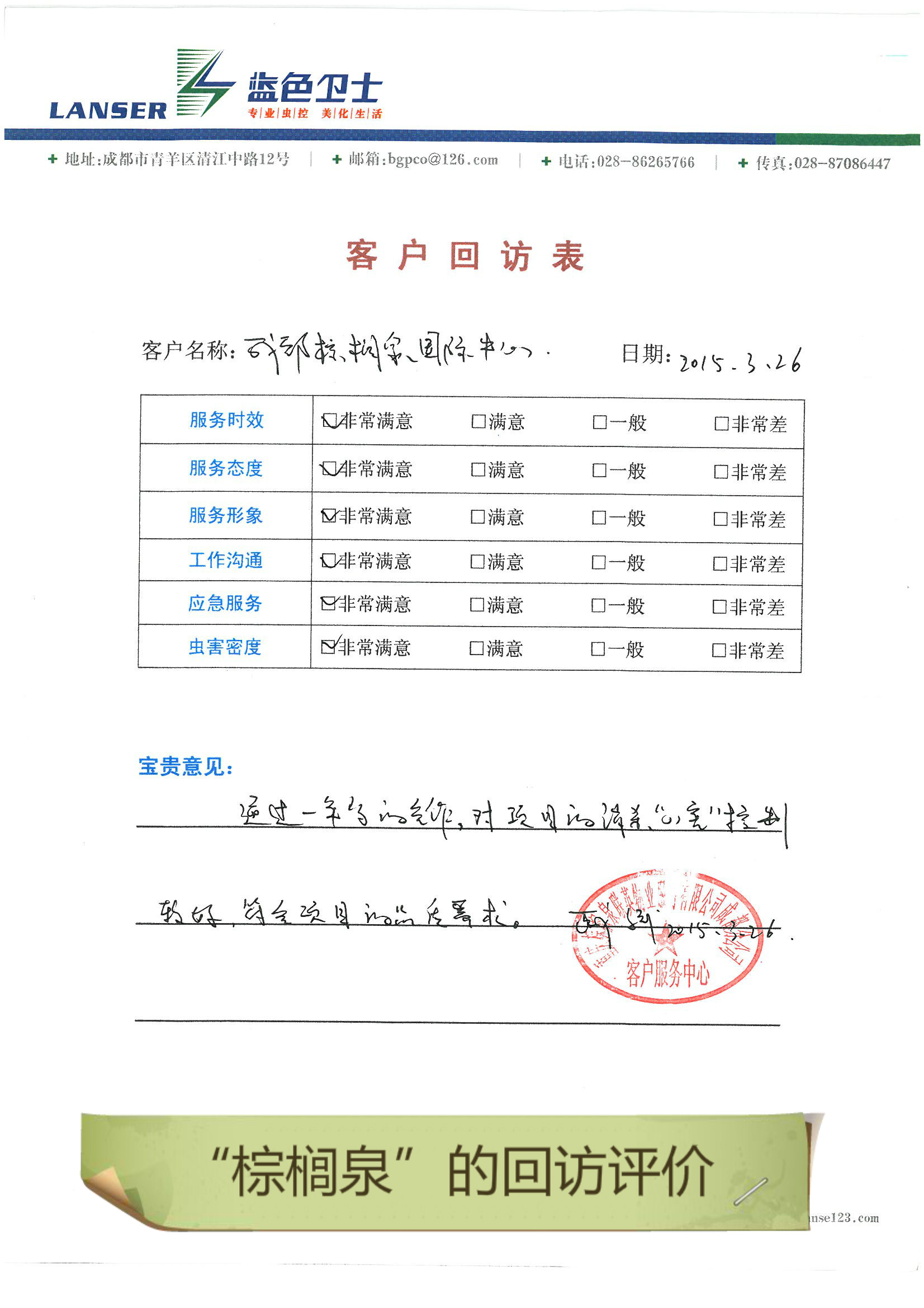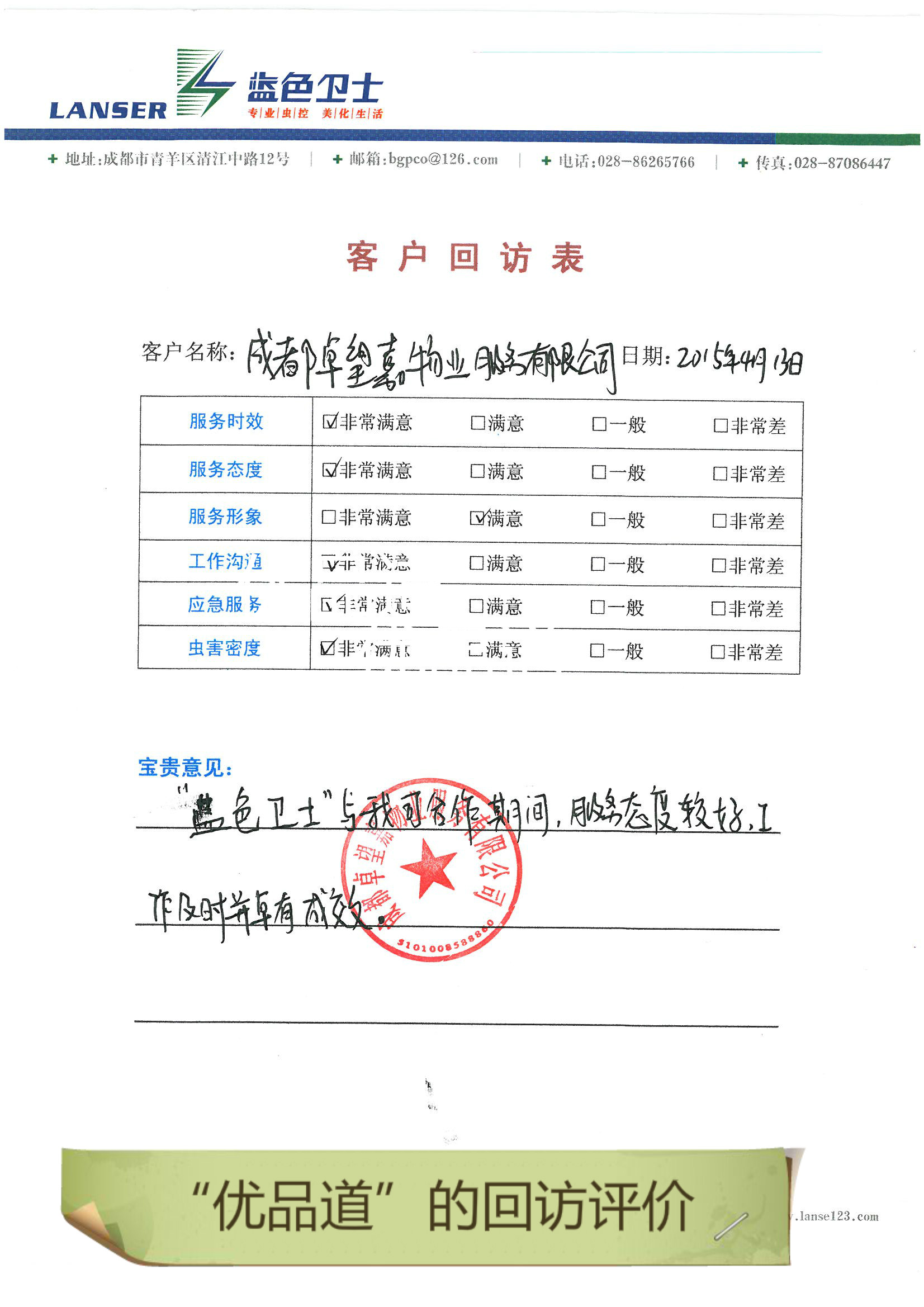 通過合作,對四害的消殺控制的很好,符合項(xiàng)目品質(zhì)要求!